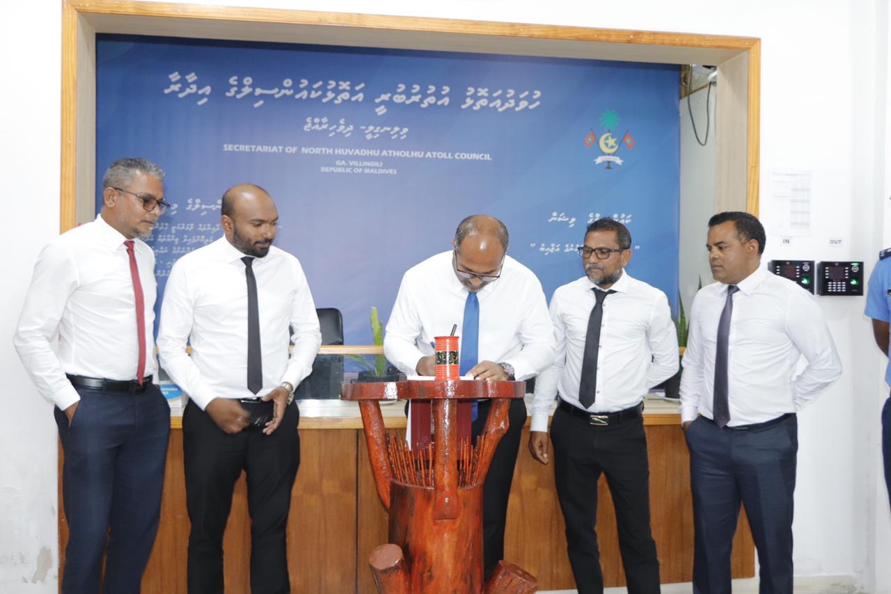 މިރަސްމިއްޔާތުގައި އަތޮޅުކައުންސިލްގެ ރައީސްދެއްކެވި ވާހަކަފުޅުގައި އަތޮކައުންސިލް ދެމިއޮންނާނީ ރައްޔިތުންނާއި ގާތުން ޚިދްމަތްދޭ ކައުންސިލެއްގެ ގޮތުގައި ކަމަށާއި ރައްޔިތުންނަށް ލާބަ ހުރި ކަންކަން ކުރުމުގައި ކައުންސިލް އެއްރޫހެއްގައި އަބަދުވެސް މަސައްކަތް ކުރައްވާނޭ ކަމުގައި ވިދާޅުވިއެވެ. އަތޮޅުކައުންސިލްގެ އެސިސްޓެންޓް ކައުންސިލް އެގްޒެކެޓިވް އަލްފާޟިލް މުޙައްމަދު ހަސަން ތައާރަފްކޮށްދެއްވި މި ރަސްމިއްޔާތުގައި އައިޑީކާޑުގެ ޚިދްމަތް އަތޮޅުކައުންސިލްގައި ފެއްޓެވުމަށް ހޯމް މިނިސްޓްރީން ދެއްވާފައިވާ އެހީތެރިކަން ފާހަގަކޮށް އެކަމުގެ އަގުވަޒަން ކުރުމުގެ ގޮތުން ހަނދާނީ ފިލައެއް އެރުވިފައިވެއެވެ. މިފިލާ ވަޒީރަށް އެރުވީ އަތޮޅުކައުންސިލްގެ ރައީސް އަލްފާޟިލް އިބްރާހީން ޝަހީން