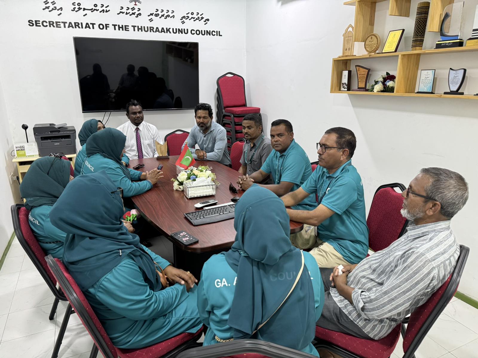ގއ. އަތޮޅުކައުންސިލްގެ މުވައްޒަފުން ހއ. އަތޮޅަށް ކުރަމުންދާ ތަޖުރިބާ ދަތުރުގައި ކައުންސިލްގެ ޓީމް 02 އޮކްޓޯބަރ 2024 ގައި ހއ. ތުރާކުނަށް ޒިޔާރަތްކޮށްފި . ތުރާކުނުން އިން ކައުންސިލްގެ ޓީމަށް ވަރަށް ހޫނު މަރުހަބާއެއް ދަންނަވާފައިވޭ . މިދަތުރުގައި ކައުންސިލްގެ ޓީމުން ތުރާކުނު ކައުންސިލާއި ބައްދަލުކޮށް ކައުންސިލް ހިންގުމުގައި އެރަށަށް ދިމާވާ ދަތިތަކާއި ހުރި ގޮންޖެހުންތަކާއި މެދު މަޝްރަވާކޮށް ދެފަރާތުން މައުލޫމާތު ހިއްސާކުރެވިފައިވޭ . އަދި ތުރާކުނު ކައުންސިލުން އެރަށުގައި ހިންގަމުންދާ ޕްރޮޖެކްޓްތައް ބައްލަވާލައްވާފައިވޭ . އަތޮޅުކައުންސިލްގެ ޓީމުގެ މި ދަތުރުގައި ތުރާކުނުގެ ބައެއް ސެކްޓަރތަކަށް ޒިޔާރަތްކޮށް އަދި ނޮދަން މޯސްޓް ޕޮއިންޓަށް ޒިޔާރަތްކޮށްފައިވޭ . ތުރާކުނު ކައުންސިލަށް އަތޮޅުކައުންސިލްގެ ފަރާތުން ދަތުރުގެ ހަނދާނީ ރަމްޒެއް ހަވާލުކޮށްފައިވޭ . ޓީމުގެ ފަރާތުން ތުރާކުނު ކައުންސިލްގެ ސެކްރެޓަރީ ޖެނެރަލާއި މިރަމްޒް ޙަވާލުކޮށް ދެއްވީ އަތޮޅުކައުންސިލްގެ ނާއިބްރައީސް އަލްފާޟިލް ނާސިޙް އިބްރާހީމް .
