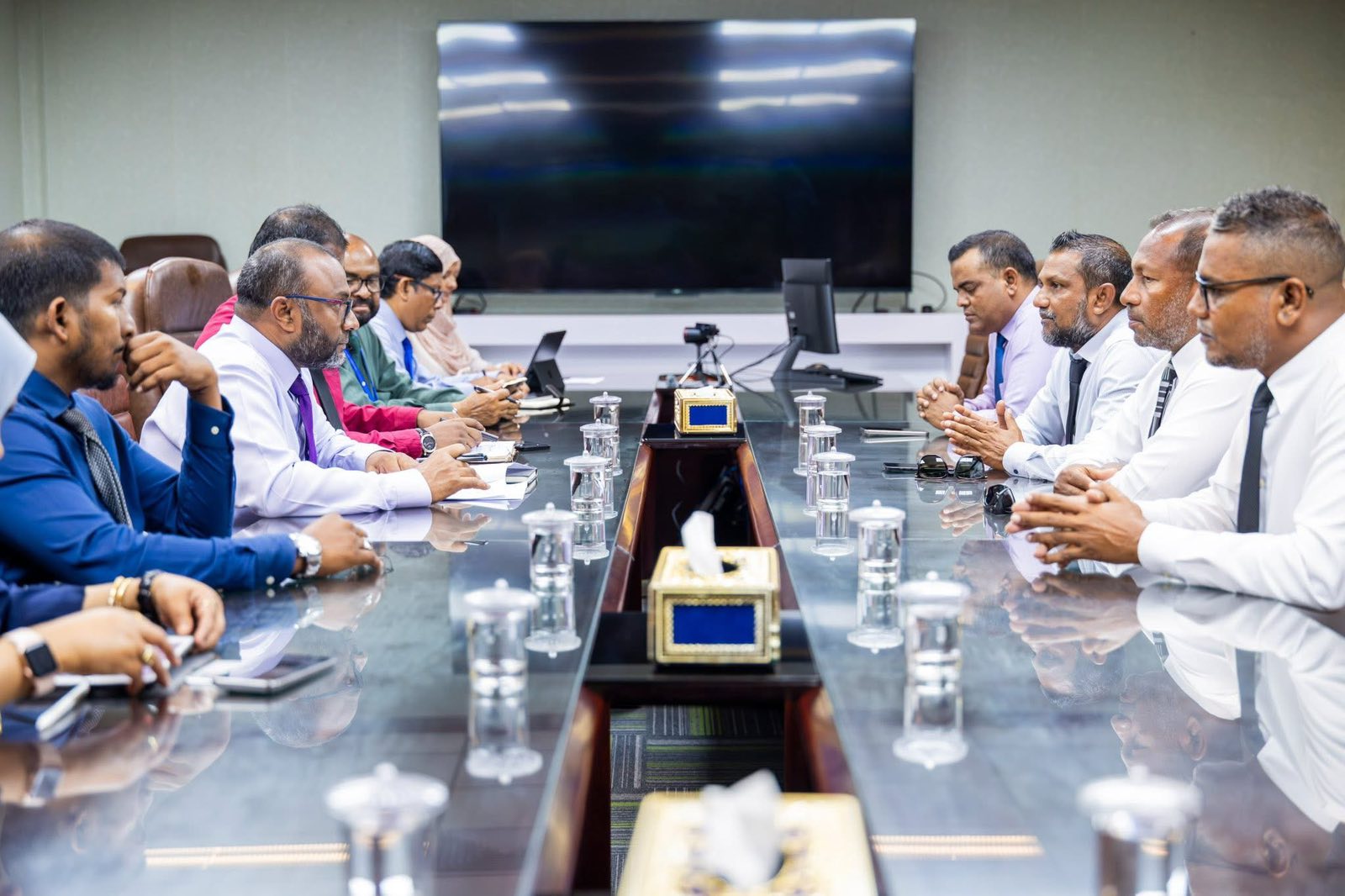 ގއ. އަތޮޅުގައި ހިނގަމުންދާ ތަރައްގީގެ މަސައްކަތްތަކާއި ޕްރޮޖެކްޓްތައް ހިންގުމުގައި ދިމާވެފައިވާ ދަތިތަކާއި އެހީތެރިކަން ބޭނުންވާ ދާއިރާތައް ފާހަގަކޮށް އެކަންކަމުގެ މައުލޫމާތު ހިއްސާކޮށް އެހީތެރިކަން ހޯދުމަށް މާލެއަށް ކުރައްވަމުން ގެންދަވާ ދަތުރުފުޅުގައި މިނިސްޓްރީ އޮފް އިސްލާމިކް އެފެއަރޒާއި އެކު 30 ސެޕްޓެމްބަރ 2025 ގައި ބައްދަވުމެއް ބާއްވައިފި. މިބައްދަލުވުމުގައި ގއ. އަތޮޅުގެ މިސްކިތްތަކުގެ ކަރަންޓަށް ކުރަމުންދާ ހޭދަ ކުޑަކޮށް އަތޮޅުގެ ހުރިހާ މިސްކިތެއްގައި އިއާދަކުރަނިވި ހަކަތަ ބޭނުންކުރުމަށް ސޯލާ ޕްރޮޖެކްޓެއް ހިންގުމާއިބެހޭ ގޮތުން ފުޅާދާއިރާއެއްގައި މަޝްވަރާކުރެވިފައިވޭ. މިބައްދަލުވުމުގައި ވަޒީރު ޑރ. މުޙައްމަދު ޝަހީމް އަލީ ސަޢީދާއި މިނިސްޓްރީގެ އިސްބޭފުޅުން ބައިވެރިވެ ވަޑައިގެންނެވި. މިބައްދަލުވުމުގައި އަތޮޅުކައުންސިލްގެ ފަރާތުން ބައިވެރިވެ ވަޑައިގެންނެވީ އަތޮޅުކައުންސިލްގެ ރައީސް އަލްފާޟިލް އިބްރާހީމް ޝަހީންގެ އިތުރުން ކައުންސިލްގެ ނާއިބްރައީސް އަދި ނިލަންދޫ ކައުންސިލްގެ ރައީސް އަލްފާޟިލް ނާސިޙް އިބްރާހީމާއި ، މާމެންދޫ ކައުންސިލްގެ ރައީސް އަޙްމަދު އަޒީޒާއި ، ދާންދޫ ކައުންސިލްގެ ރައީސް މުހައްމަދު އާސިފާއި އަތޮޅުކައުންސިލްގެ ސެކްރެޓަރީ ޖެނެރަލް އަލްފާޟިލް މުޙައްމަދު ފަތުހީ.